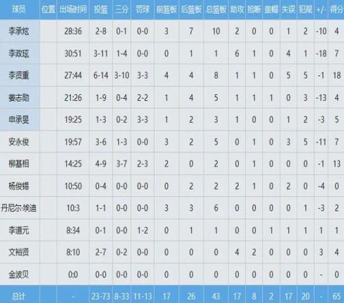韓國男籃數據如下: