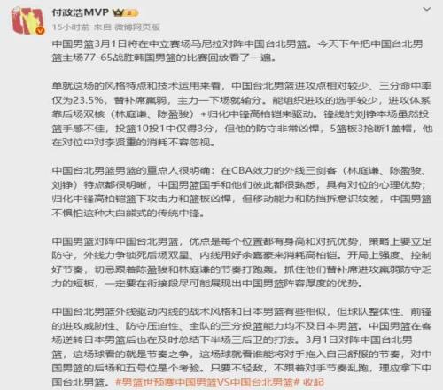 近日中國臺北隊77-65擊敗韓國男籃。要知道世預賽首個窗口期,中國男籃分別76-80,以及76-90不敵韓國男籃。
