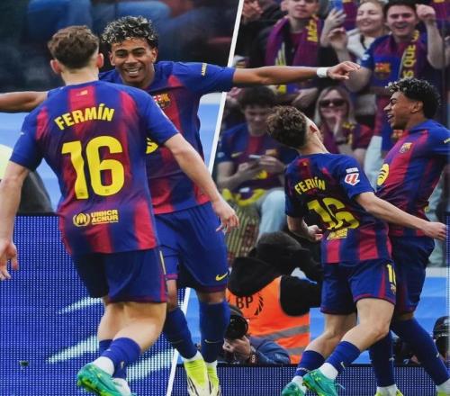 比賽開始后,2隊(duì)都踢得較為沉悶,場(chǎng)面上并沒有出現(xiàn)太多的機(jī)會(huì);直到比賽強(qiáng)度逐漸成型,巴薩的優(yōu)勢(shì)便開始體現(xiàn)。第27分鐘,費(fèi)爾明中線精準(zhǔn)卡位斷球后就地送出直塞,亞馬爾迅速啟動(dòng)反越位得球形成單刀面對(duì)門將低射遠(yuǎn)角打破僵局,1:0!