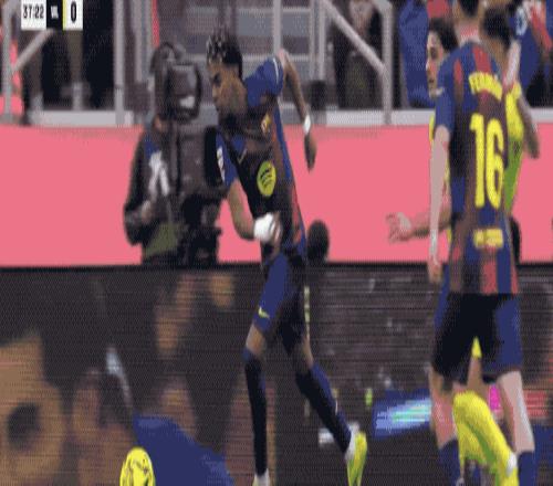 蓋耶在本方半場太過拖沓被搶斷,費爾明送出妙傳,亞馬爾冷靜推射,打破僵局。