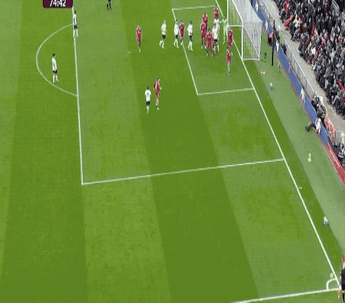 隨后紅軍的過攻狂潮一浪高過一浪,沖擊著鐵錘幫的后防,第25分鐘,又是索博斯洛伊開出角球,范戴克泰山壓頂式的頭槌再下一城,幫助利物浦將比分擴大到了2-0。這是紅軍上半場通過角球制造的第二粒進球。