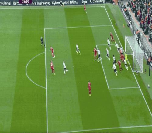 第43分鐘,薩拉赫開出角球,鮑恩后蹭解圍不遠,埃基蒂克冷靜回敲,麥卡利斯特外腳背凌空抽射建功,利物浦3-0遙遙領先,上半場結束,紅軍獲得7次角球,3次轉化為進球。安菲爾德仿佛變成了定位球實驗室。