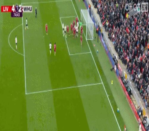第24分鐘,索博斯洛伊開出角球,范戴克頭球建功,利物浦2-0西漢姆聯
