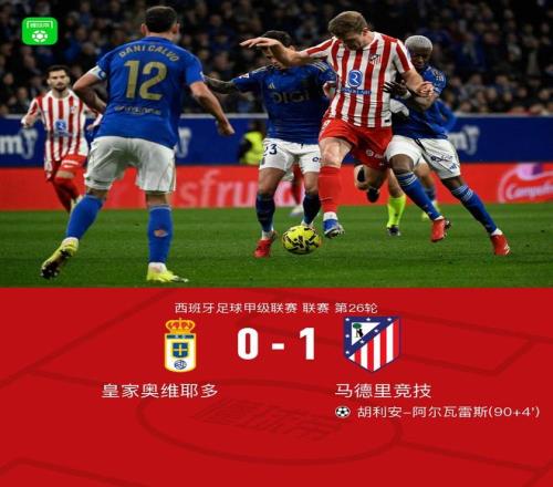 北京時間3月1日西班牙足球甲級聯賽 聯賽 第26輪,皇家奧維耶多主場對陣馬德里競技。上半場奧布拉克屢次救險,下半場巴埃納破門,阿爾瓦雷斯絕殺。最終比分皇家奧維耶多 0-1 馬競。