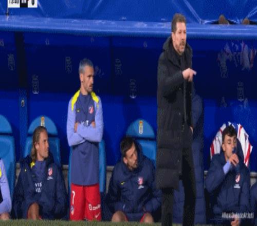第14分鐘,心情不錯,格列茲曼替補席談笑風生