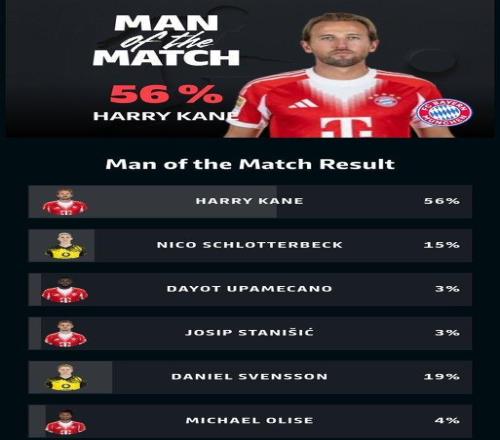 賽后,凱恩以56%的票數(shù)當(dāng)選全場最佳球員。他在社交媒體上寫道:“三分到手!能夠成為這支球隊的一員讓我非常自豪,我們在國家德比中取得了一場非常重要的勝利。”