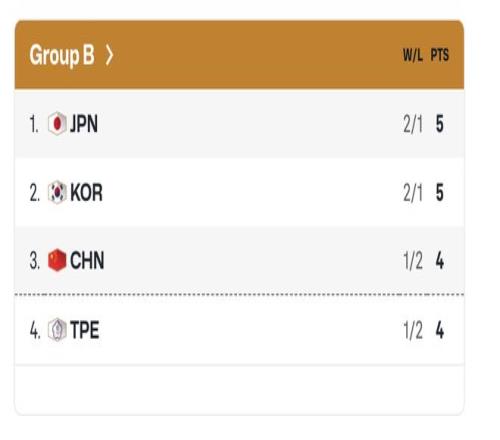 中國隊(duì)與日本隊(duì)、韓國隊(duì)、中國臺北隊(duì)同在B組