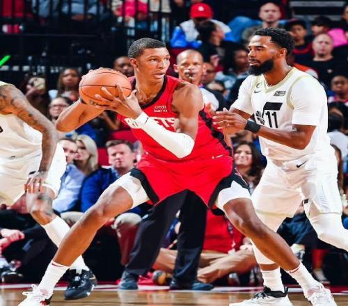 22歲的小賈巴里史密斯本賽季一直占據火箭隊首發大前鋒位置,他是申京在內線的最佳搭檔,既能護框也能投三分、拉開空間,也是一位防守高手,還能為申京協防,是申京在內線的最好搭檔。本場比賽小史密斯不在,阿門湯普森回到了大前鋒位置上。但阿門湯普森的護框能力和身高沒法跟小史密斯相比,因此申京在內線飽受沖擊。他將更多的體能放在防守端,但是效果不佳。
