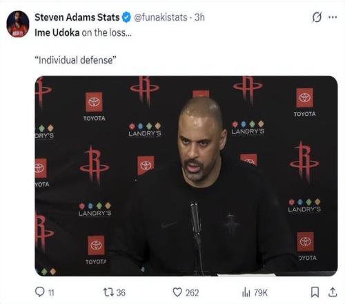 烏度卡賽后談到球隊輸球的關鍵,他認為并不是熱火的聯防導致球隊失利,因為火箭這個賽季見過不少聯防也應對的不錯,問題是出現空位后我們能投進那些球,但出現空位時投不進聯防就顯得更有效。對于我們來說得分其實不是問題,我覺得個人防守太差,雖然半場我們追平比分,可我們一節就丟30+,如果我們的個人防守能更正常一點,這場比賽就能贏了。
