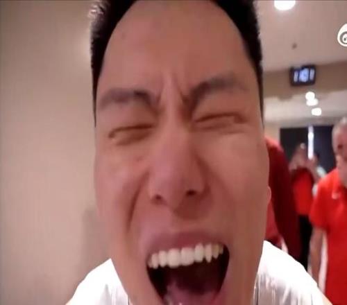 比賽結束之后,中國男籃眾將在更衣室里瘋狂慶祝,作為奇兵的李弘權沖著鏡頭怒吼,完全釋放了自己的情緒。