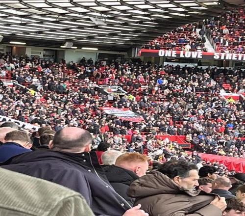 本場對陣水晶宮,老特拉福德看臺拉起了“曼聯(lián)很自豪被移民殖民(MUFC proudly colonised by immigrants)”的橫幅,回應(yīng)了拉特克利夫的“移民殖民了英國”言論。