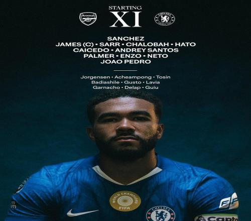 切爾西首發:1-羅伯特-桑切斯、24-里斯-詹姆斯、19-馬馬杜-薩爾、23-特雷沃-查洛巴、21-哈托、17-安德雷-桑托斯、25-莫伊塞斯-凱塞多、7-佩德羅-內托、8-恩佐-費爾南德斯、10-帕爾默、20-若昂-佩德羅