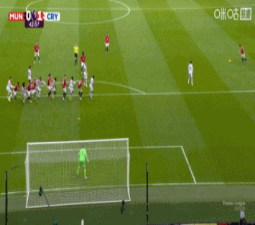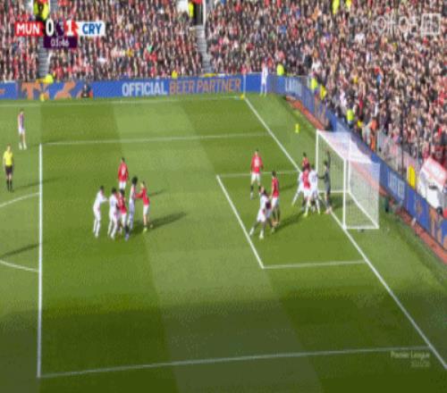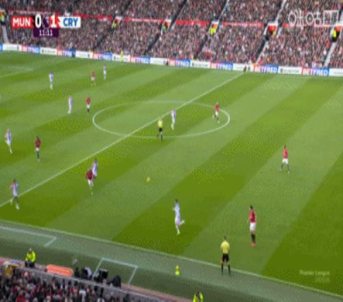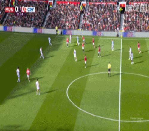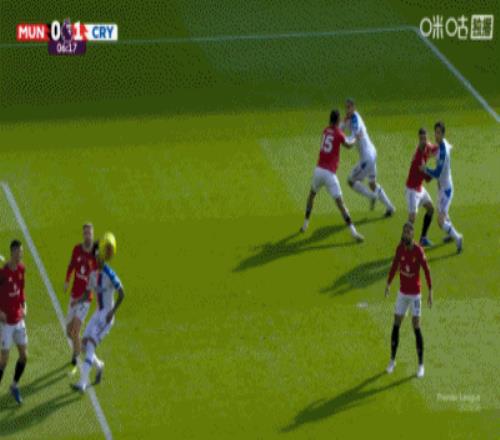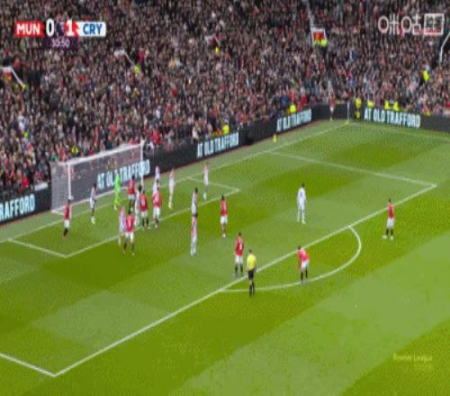 第4分鐘,水晶宮左側角球機會,球罰向禁區,約羅防守漏人,拉克魯瓦頭球攻門得手,水晶宮1-0曼聯。↓
