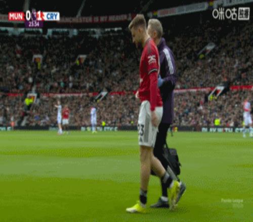 第22分鐘,盧克·肖坐在地上,此前他腳部被踩了一下,無法繼續堅持比賽,第24分鐘被馬茲拉維換下。↓