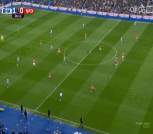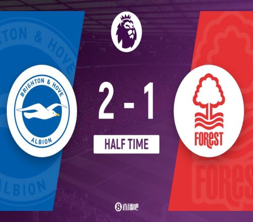上半場(chǎng)比賽結(jié)束,布萊頓2-1諾丁漢森林。