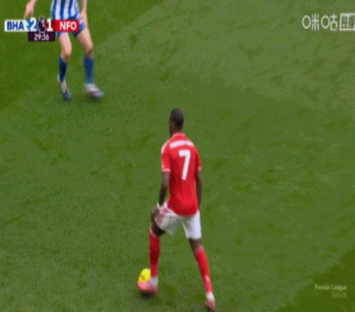 第12分鐘,熱蘇斯左路打穿防線殺到前場(chǎng)送出橫傳,懷特弧頂?shù)们蜣Z出世界波扳平比分,諾丁漢森林1-1布萊頓。↓