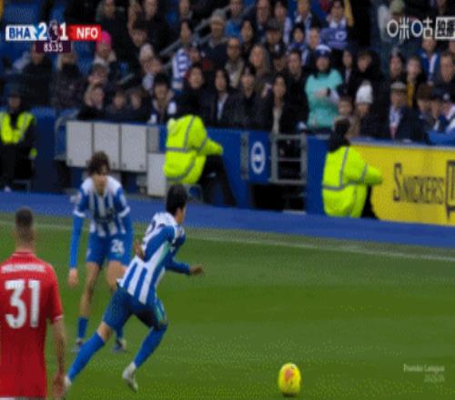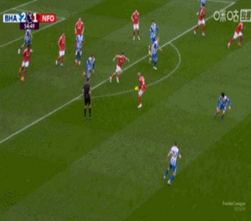 第5分鐘,森林后場連續解圍失誤,迭戈·戈麥斯禁區右側一腳凌空掃射打進球門遠角,布萊頓1-0諾丁漢森林。↓