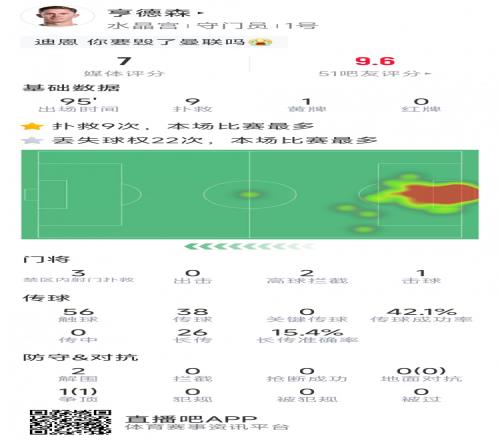 本場比賽水晶宮門將迪恩·亨德森做出9次成功撲救,56次觸球,2次解圍,1次成功對抗,避免球隊遭遇大比分失利。