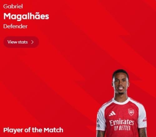 體育播報(bào)3月2日宣 英超官方宣布加布里埃爾當(dāng)選阿森納戰(zhàn)勝切爾西全場(chǎng)最佳球員。