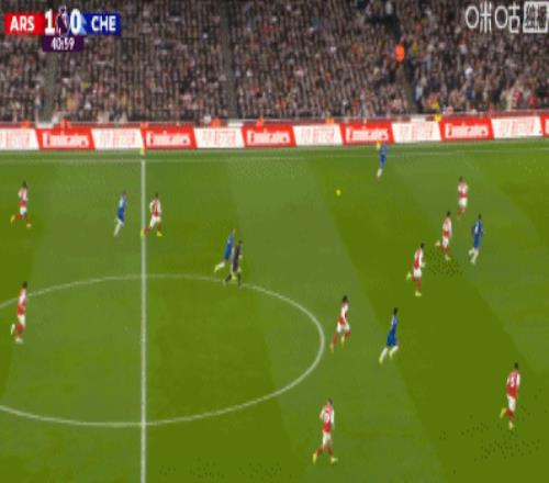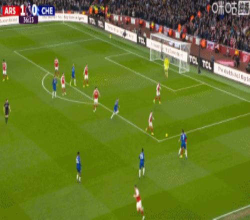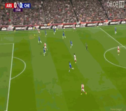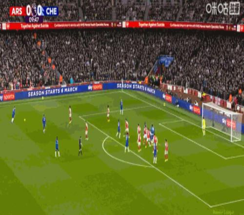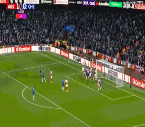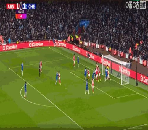 第21分鐘,薩利巴利用角球機會頭球破門,阿森納1-0切爾西!