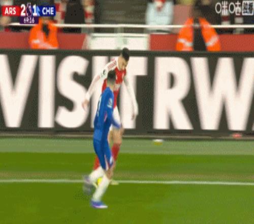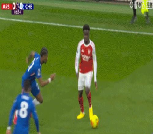 第59分鐘,帕爾默拉倒薩卡,被黃牌警告