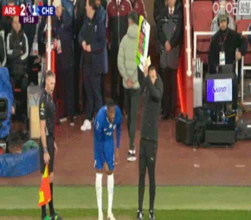 第79分鐘,不滿判罰,恩佐砸球發泄情緒得到一張黃牌