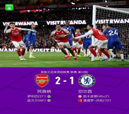 北京時間3月2日英格蘭足球頂級聯賽 聯賽 第28輪,阿森納主場對陣切爾西。阿森納薩利巴破門,廷貝爾破門,因卡皮耶自擺烏龍。最終比分阿森納 2-1 切爾西。