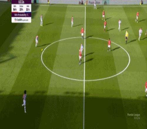 上半場后半段,受限于一周雙賽帶來的體能問題,當然也有取得進球之后的保守心態,水晶宮的表現就比較一般了,整體被曼聯圍住,打出的反制少之又少。