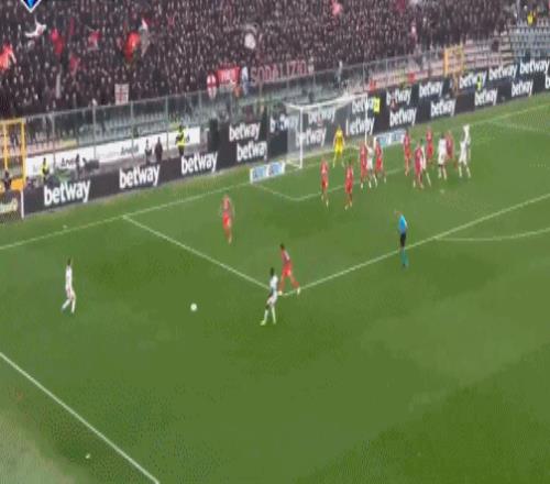 第55分鐘,羅馬角球戰術配合,恩迪卡門前混戰中再下一城,羅馬2-1再次反尤文。