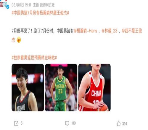 從小組的積分排名來看,中國男籃排在第三名,也就意味著接下來如果我們能夠在主場打敗日本隊,大概率是能夠晉級到下一輪比賽的。所以希望這些留洋的王牌回歸之后,大家都能夠全力以赴,爭取在主場以傳來好消息。我們也希望中國男籃一步一個腳印,看看能不能夠在下一屆奧運會爭取進入比賽,將來才能夠帶給中國男籃更多的希望,我們球迷才能夠重燃對中國籃球的熱情。