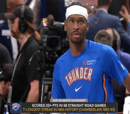 亞歷山大連續(xù)59個客場得分20+,超越張伯倫在1962-63賽季保持的連續(xù)58場紀錄,創(chuàng)NBA歷史第一紀錄。