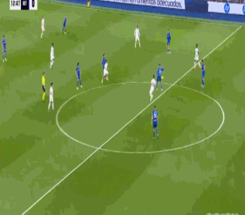 第23分鐘,皇馬左路壓上,居萊爾禁區前沿一個漂亮的馬賽回旋突破防守殺入禁區,稍作調整后近距離左腳大力兜射,索里亞再次建功,奮力將球托出底線。第38分鐘,赫塔菲前場斷球反擊,伊格萊西亞斯右側45度角得球斜吊門前,呂迪格頭球解圍沒有頂遠,楚阿梅尼禁區弧頂處和阿蘭巴里爭搶中還爭輸了,阿蘭巴里頭球一蹭,阿蘭巴里身側的薩特里亞諾迎球凌空怒射,皮球直掛球門左上死角,赫塔菲1:0打破僵局。