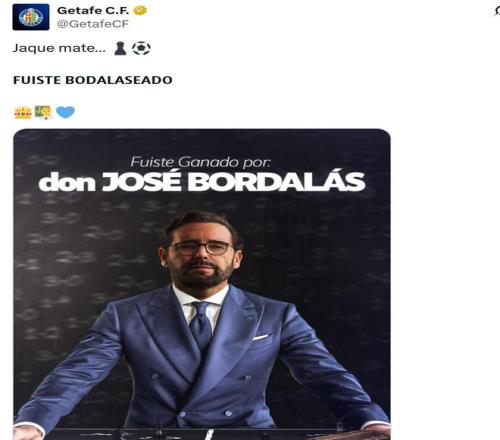 而在另一條中,赫塔費官媒則發出球隊主帥博爾達拉斯的照片并配文:“將死。(Jaque mate)”