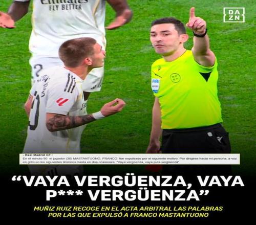 根據裁判的賽后報告,他對兩三米外的主裁判穆尼斯·魯伊斯罵了“真是恥辱,真XX的恥辱!”據西班牙足協(xié)紀律守則第124條規(guī)定:“以蔑視或不尊重的態(tài)度或言語對待裁判,只要該行為不構成更嚴重的違規(guī)行為,將被處以停賽2至3場或長達1個月的處罰。” 馬斯坦托諾的情節(jié)很可能只會停賽2場,錯過3月6日作客塞爾塔和3月14日主場對埃爾切的比賽。