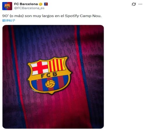 巴薩在社媒發(fā)文預(yù)熱次回合:90' (o más) son muy largos en el Spotify Camp Nou.(諾坎普的90多分鐘非常漫長)
