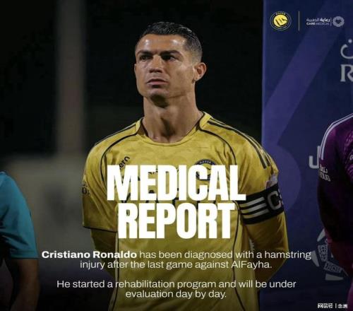 利雅得勝利官方宣布,葡萄牙球星C羅在上一場對陣費哈的比賽后被診斷為腿筋受傷,他已經開始康復計劃,并將接受每日評估。