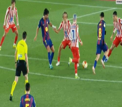 第27分鐘,魯杰里左路低平球橫傳,格列茲曼門前接應,擺脫防守抽射一氣呵成,打得太正被霍安-加西亞撲出。
