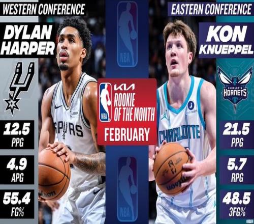 但弗拉格因腳傷在2月大部分時間缺陣,馬刺后衛迪倫-哈珀成為本賽季首位非杜克系的月最佳新秀,斬獲西部月最佳新秀。