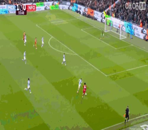 塞門約迎球凌空端射,動(dòng)作一氣呵成。皮球如出膛炮彈,直竄網(wǎng)窩!1-0,曼城取得領(lǐng)先。