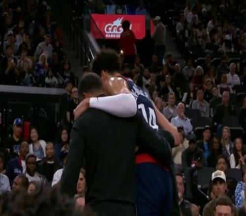 本場比賽,快船替補中鋒在第二節(jié)遭遇了傷病,當時步行者的進攻回合,內(nèi)史密斯突破上籃被尼德豪澤大帽扇掉,但是在落地時,尼德豪澤扭到了右腳,當時他就疼得一直拍地板。