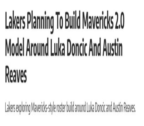 “這里已經是東契奇的球隊了。但湖人必須重新裝修、徹底重建。詹姆斯在隊里,這事就沒法推進。未來核心是東契奇,以及二當家里夫斯。然后再圍繞他們搭人,必須找一個護筐手。”