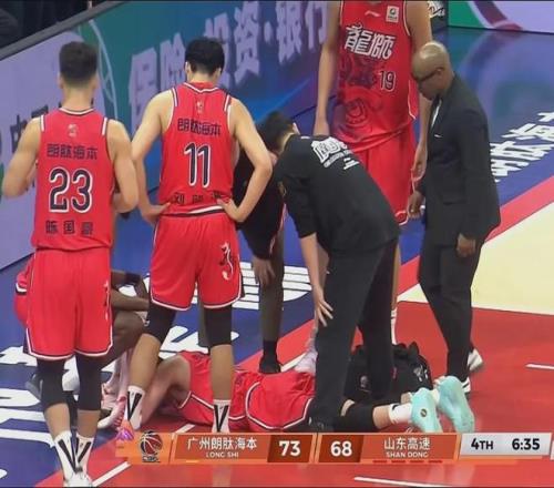 近日結(jié)束的廣州隊(duì)主場93-85擊敗山東隊(duì)比賽,此役進(jìn)行到末節(jié)時(shí),郭艾倫持球快攻反擊對抗后受傷倒地,直接被擔(dān)架抬出場外治療。