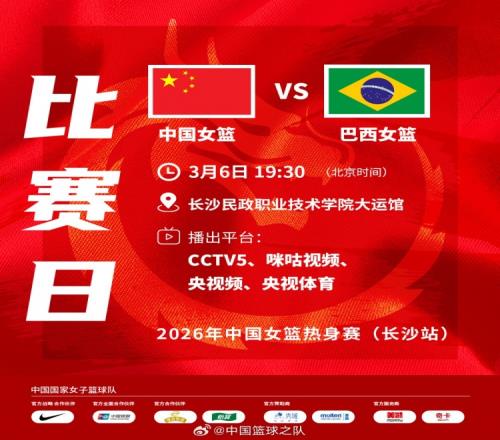 體育播報3月6日宣 中國籃球之隊發布中國女籃最新賽事信息。今晚19:30,中國女籃將在長沙繼續對陣巴西女籃。