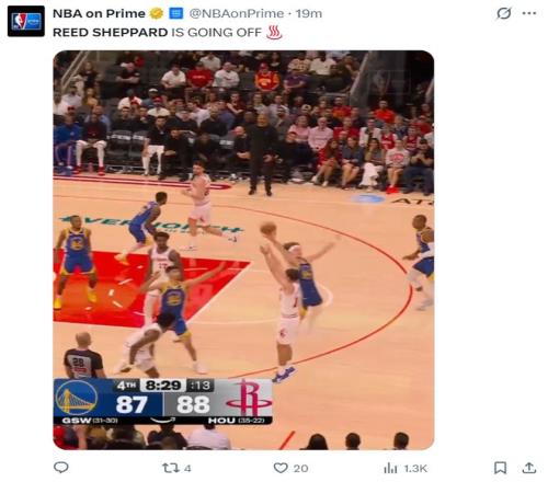 第三節謝潑德5分鐘里3中3+三分1中1拿到7分1助攻,他已經是火箭三節打完反超的關鍵功臣,三節打完已經拿到18分。不過末節他的表現更是引爆主場球迷,他連續三個三分球幫助火箭一度拉開到6分,只可惜他被換下后勇士很快扳平。