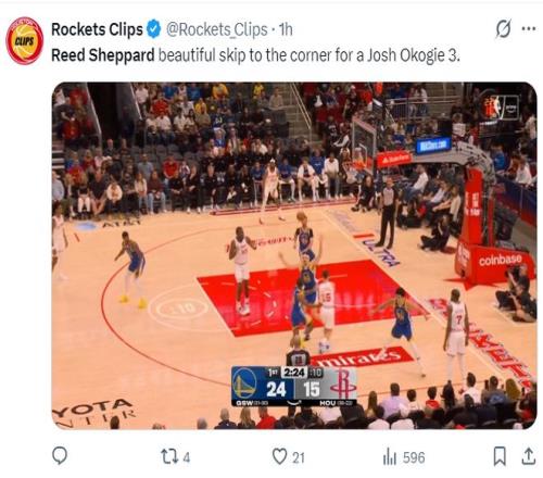 火箭記者Mitty:我就是不明白為什么球隊拒絕讓謝潑德先發,勇士對我們的緊逼防守除了謝潑德外根本沒人可以突破他們的防線,他是我們需要的控球手。