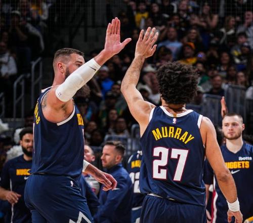 開場掘金的進攻主導權是在賈馬爾-穆雷這邊,很明顯約基奇也樂見其成,首節穆雷5分鐘里三分2中2拿到9分2助攻,約基奇首節4中3拿到6分5籃板4助攻,約基奇這個數據就是沖著三雙去了。
