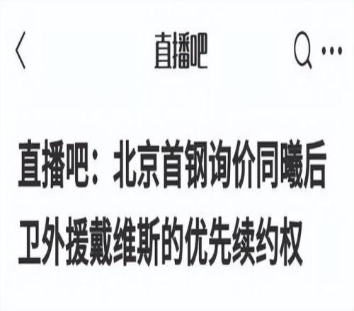 北京男籃本賽季的國產陣容非常豪華,但外援的表現差點意思。在CBA聯賽的這個窗口期里,北京男籃對外援進行了調整,簽下了前NBA悍將麥基,目前他已經抵達了球隊。在小外援方面,北京男籃有意換掉表現不佳的貝利,一直在尋找更加合適的小外援人選。目前這件事有了確切的消息,據直播吧透露,北京男籃已經對同曦男籃進行了詢價,想要購買外援肯德里克-戴維斯的優先續約權。