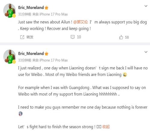 莫蘭德還繼續談到自己本賽季重返遼寧男籃效力的感受:“我突然意識到,如果有一天遼寧男籃不再與我續約,我的微博可能就沒什么用。我的大多數微博好友都來自遼寧,比如我在廣東男籃效力時,面對大部分支持我的遼寧球迷,我在微博上該說什么?我需要讓你們記住我,因為沒有什么是永恒的。讓我們一起努力,爭取在賽季結束時取得好成績!”
