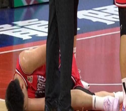 郭艾倫突然提速發動快攻,意圖借轉換節奏強攻籃下,為球隊鎖定勝局。就在他左腿屈膝蓄力、蹬地躍起準備上籃的一剎那,變故猝不及防降臨。