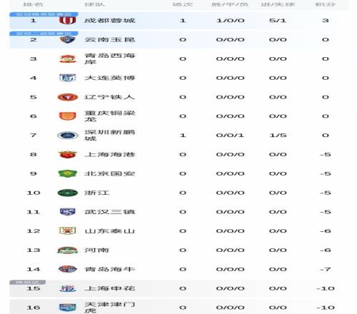 北京時間3月6日晚,新賽季的中超聯賽開賽了,成都蓉城在主場出戰揭幕戰,對手是深圳新鵬城。兩隊在上賽季中超收官戰中交手,當時戰成1-1平,蓉城此前4次跟新鵬城碰面,取得3勝1平的戰績。在本場比賽中,蓉城逆轉取得大捷。隨著蓉城5-1大勝新鵬城,中超最新積分榜出爐!申花落后榜首13分。